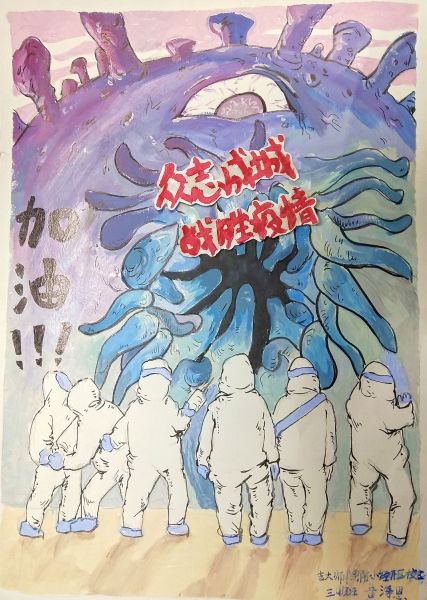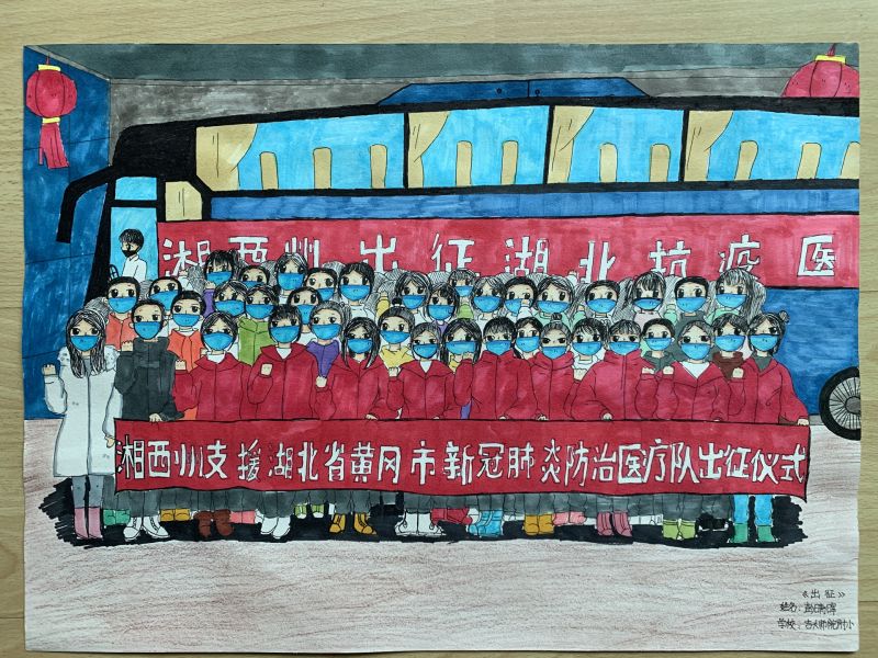 在抗击新冠肺炎疫情的战斗中,白衣战士们身披“盔甲”、冲锋在前,在他们的身后,有无数人时刻惦记牵挂着他们,用不同的方式为他们加油鼓劲!2月24日,吉大师院附小的两位小学生通过湘西州电视台,转交给我院两幅手绘画,以此向奋战在抗疫一线的医护人员致敬!