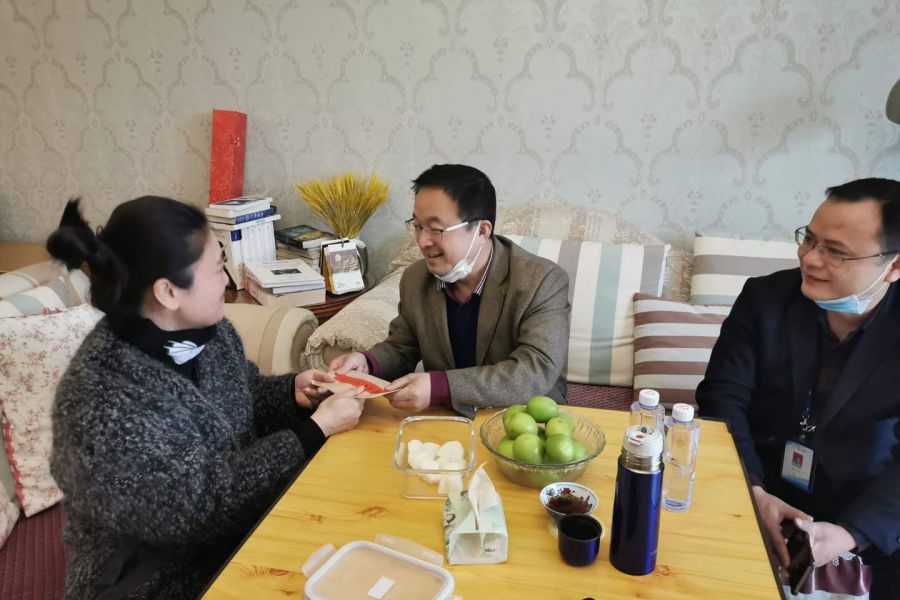 上门慰问中,院领导对所有家属表达了深深的敬意,感谢他们在大义面前共担当,感谢他们在大后方默默付出,指出了所有队员都是医院干部职工的骄傲,所有家属作为坚强后盾,“军功章里有你的一半”,光荣也属于家属们。院领导向家属转达了队员们在武汉一线的近况,介绍当地相关部门、省州派出单位、后盾单位保障情况,各项保障特别是安全措施到位,请家属们放心。