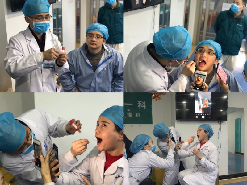 颜学刚教官为学员们进行咽拭子留取方法示教