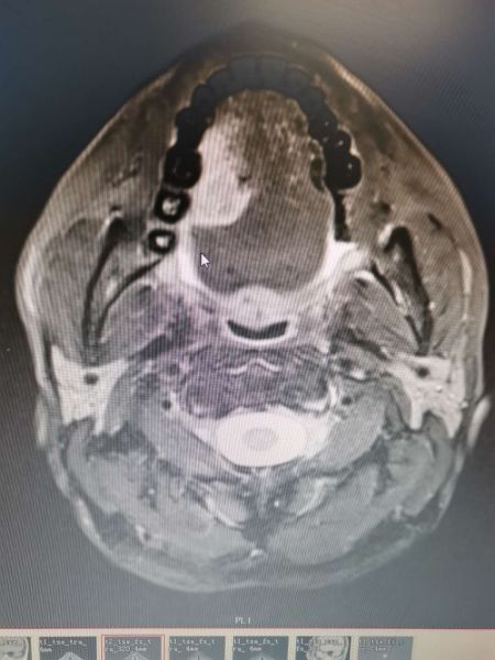 守护人民群众生命安全和身体健康也是每一个医护人员的初心。正月初六,还没正式上班,科室来了一位因舌溃疡伴疼痛就诊的患者,据门诊磁共振显示:“考虑舌Ca可能性大,范围30mmx18mmx24mm”。