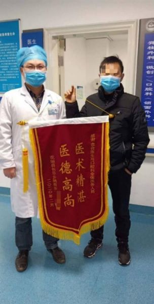 根据业务发展的需要,口腔科以专业技术团队形式,外派人员培训,与上级医院进行密集的人才培养和技术交流与合作,迅速提升临床各专业的技术、管理和服务水平。2月14日,一位舌癌患者术后3年来复查,并送给口腔科一面锦旗,从这份特殊的礼物,看到了患者内心的那份感激。这位患者是科内医师从湘雅医院进修回来后,科室第一次组织制取的前臂游离皮瓣患者。