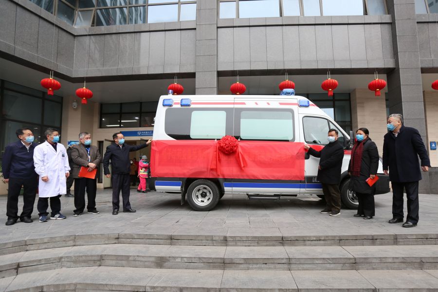 3月6号,州人民医院在内科综合楼前举行抗疫负压救护车捐赠仪式,接受扬子江药业集团捐赠的抗疫负压救护车一辆。州政协主席刘昌刚、副州长吴凌频、州政协副主席向顶天参加仪式。州卫健委副主任张河明主持仪式。