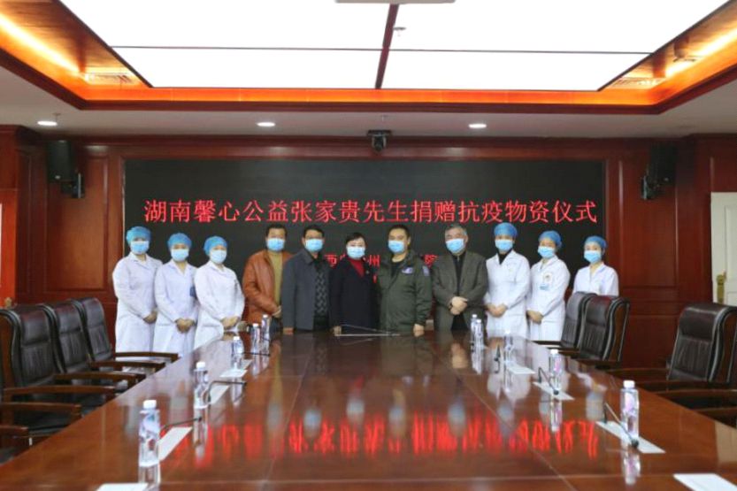 州医院党委书记彭剑涛代表医院向馨心公益张家贵先生的大爱善举表示感谢。他说,州人民医院全体医护人员在这次抗击疫情的工作中表现出了无私奉献的精神和良好的职业道德,第一批支援湖北的医疗队员也刚刚回到湘西州,馨心公益的爱心捐赠彰显了社会大爱和守望相助的精神,一定将这份善意和爱心转达给医院每一位医疗队队员。