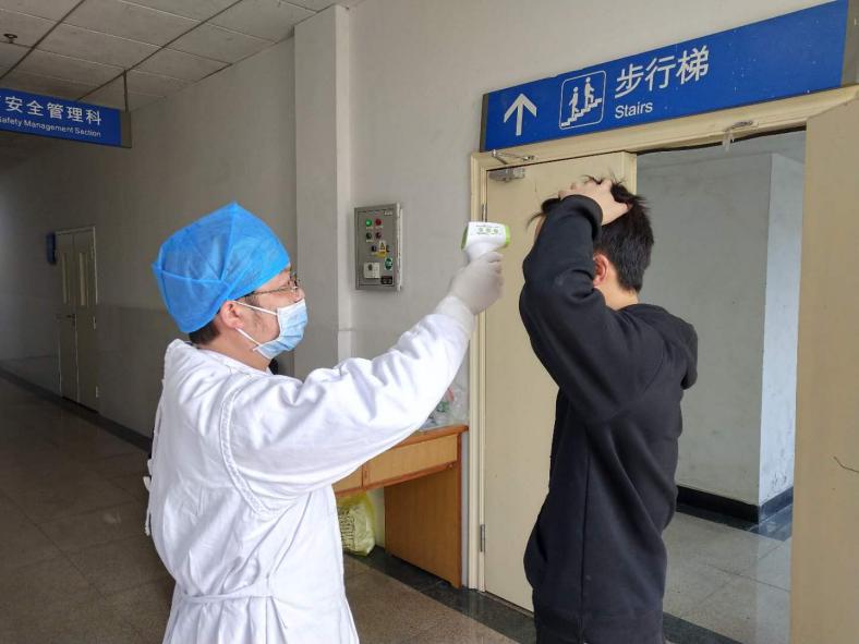 自1月18号起,保卫科及医务人员在医院各个通道、各个出口开始值守,特别是在发热门诊、门诊大厅、内外科住院部、职工通道等处对进出人员的体温测量;2月2号后,我院所有的通道出入口对往来人员一一测量体温,进行逐一筛查。随着来医院的就诊人数越来越多,为更好的完善医院防控工作,避免人群的聚集,考虑到给长期奋战在一线工作人员缓解压力,保卫科在各个通道出口增派人手,陆续增加了10-15个岗位、近40多个人手。保卫科还特别加强就诊高峰期和晚夜班的巡逻,以及停车场的管理。
