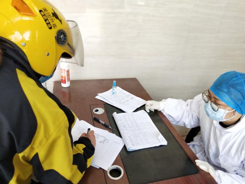 预检分诊每天也是满负荷工作,来院就诊的患者和家属都需要被全面排查,先是逐一测量体温筛查,随后又询问是否有发热和或咳嗽等呼吸道症状、是否有来自疫区或接触来自疫区的病人等等,反反复复询问同一话题,但医务人员仍然不厌其烦做好自己本职工作,做到了无死角、全覆盖。