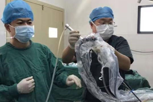 新冠疫情期间,古丈县人民医院需要专家指导腔镜下全肾切除手术,粟峰医师毫不犹豫的下到因疫情封城的古丈县,全力指导。