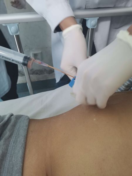 患者病情危重,进展迅速,凶险万分,这是一场与死神的较量!老年病科主任石翔主任医师、科副主任高健主任医师、主治医师姚祖伟反复询问患者病情,详细体格检查,仔细分析各项检查结果,并在肝胆外二科、血液内科、感染科、药剂科等相关科室的协助指导下,超声科等多学科合作超声引导下肝脓肿穿刺引流,明确诊断:糖尿病伴多脏器脓肿(肝脓肿、肺脓肿)并脓毒血症、脓毒症休克、感染相关性血小板减少症、心功能衰竭、低蛋白血症、多浆膜腔积液、肝中静脉腔脓栓形成。老年病科立即根据患者情况制定了科学合理的治疗方案,积极向家属交代病情,判断预后,根据病情变化及时准确调整治疗方案,最终在这场长达8周,与死神的拉锯战中取得了胜利,患者刘某已康复出院!