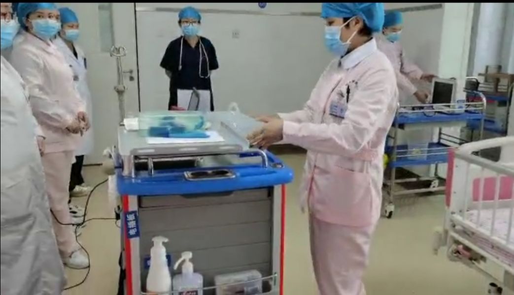 示范组经过护士长3月24日、25日两天规范培训,形成一支随时处于应急状态、有默契、有秩序的抢救医疗队。3月26日,组织科室全体医护人员逐一模拟通过抢救操作。首先是示范组模拟真实窒息患儿场景演示整个抢过程……