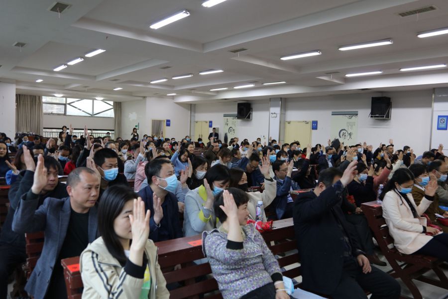与会正式代表举手表决通过了职代会几个工作报告和议案