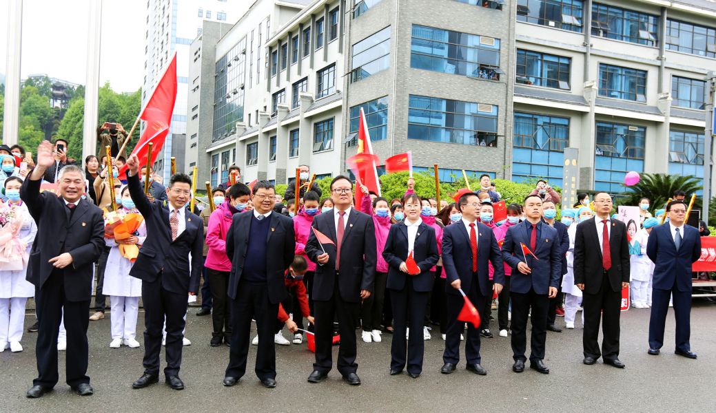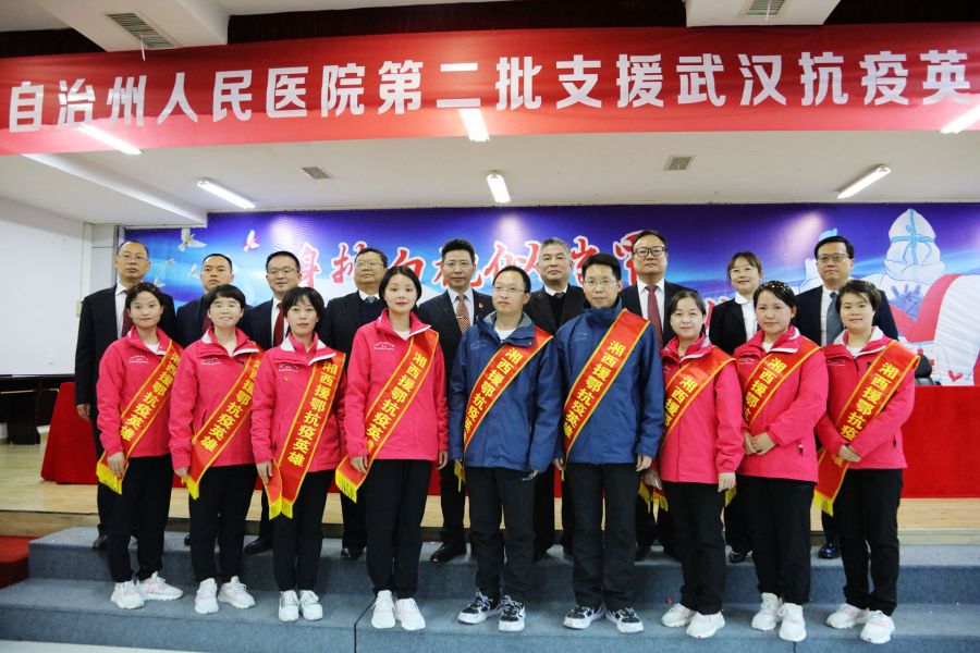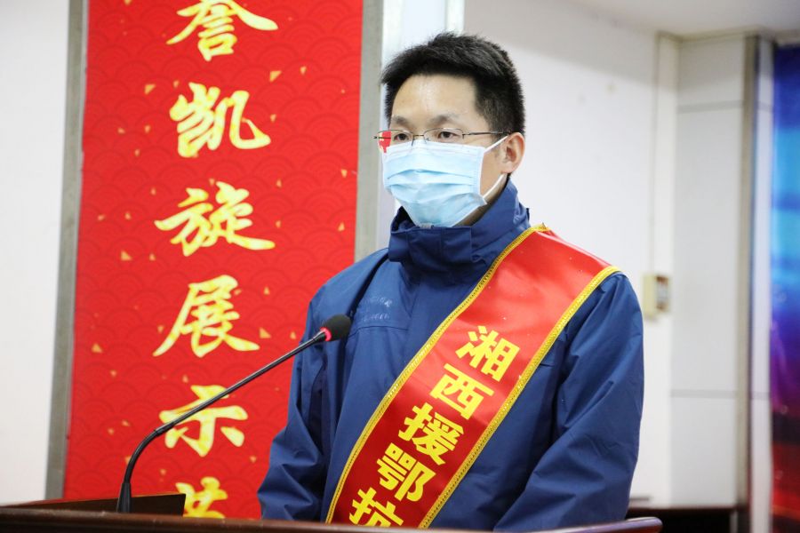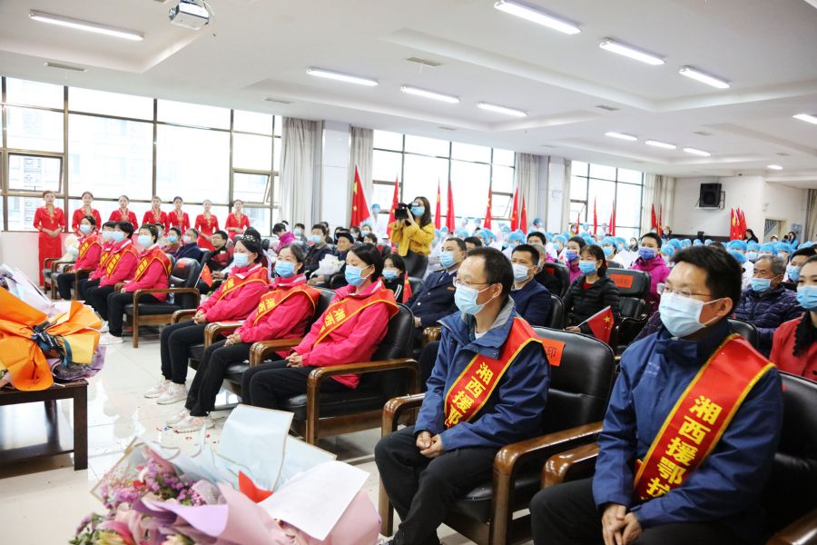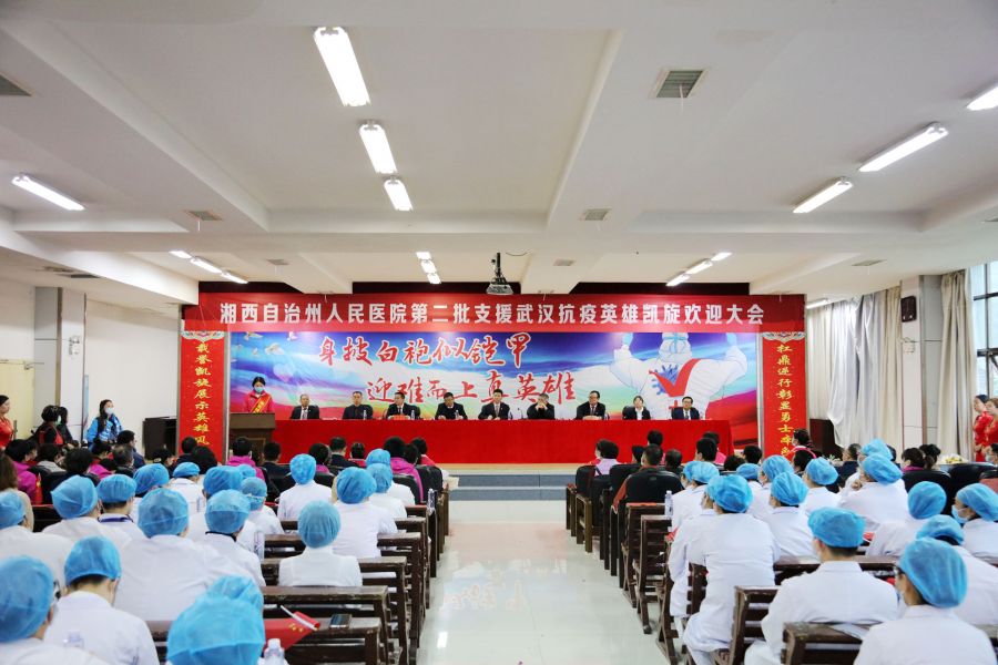 院党委书记彭剑涛在欢迎大会上讲话,他指出,“抗疫”勇士们平安凯旋,展现了“逆行英雄”的风采,表达了山河无恙的欣喜。医院的9名“抗疫”勇士作为湘西州第三批援鄂医疗队员慷慨出征,在武汉抗疫任务最艰巨的金银潭医院,出色地完成了救治任务,成为湖南省最后撤离武汉的抗疫队伍。英勇战斗所彰显的抗疫精神,进一步厚植了医院文化、丰富了州医院精神,必将激励州医人不断战胜前进道路上的艰难险阻。彭剑涛强调,当前疫情形势依然严峻,外防输入、内防反弹的防控任务艰巨繁重,州人民医院的干部职工必须提高警惕、鼓足干劲,坚持两手抓、两手硬,坚持以人民健康为中心,为建设美丽开放幸福新湘西而努力奋斗。