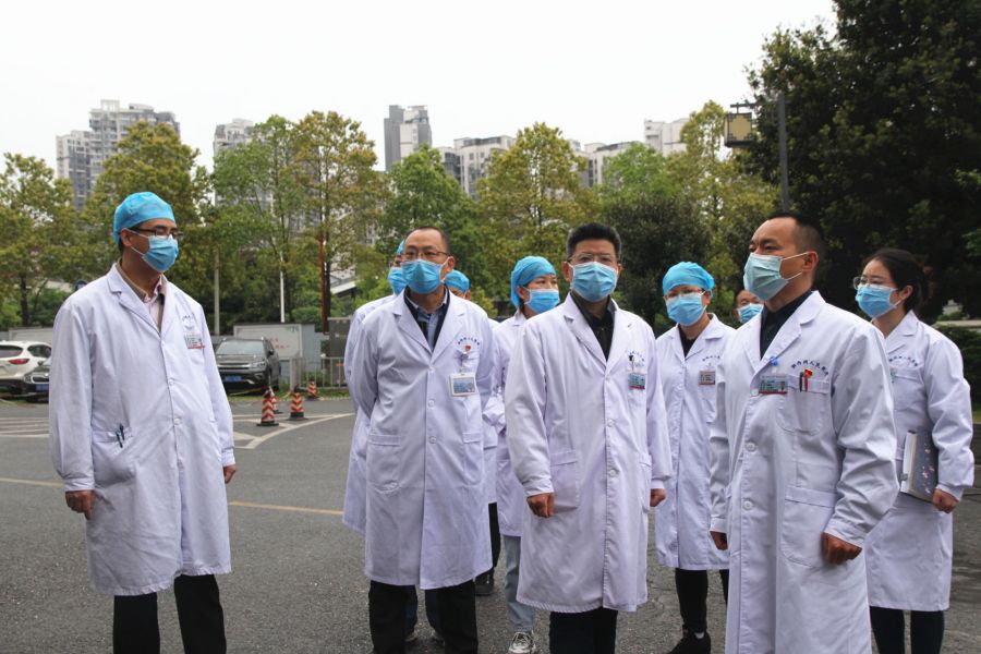 院长周明欢带队到院内现场查看疫情防控工作。