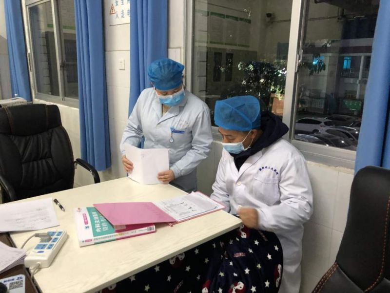 新冠肺炎期间,杨斌医生和古丈县内科主管医生一起探讨病人病情