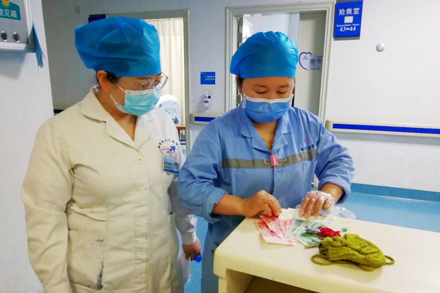 “我们赶紧联系患者吧!”护士长田瑜刚说完,责任护士小向立即找来电话号码和患者联系上了,并妥善保管好钱袋。