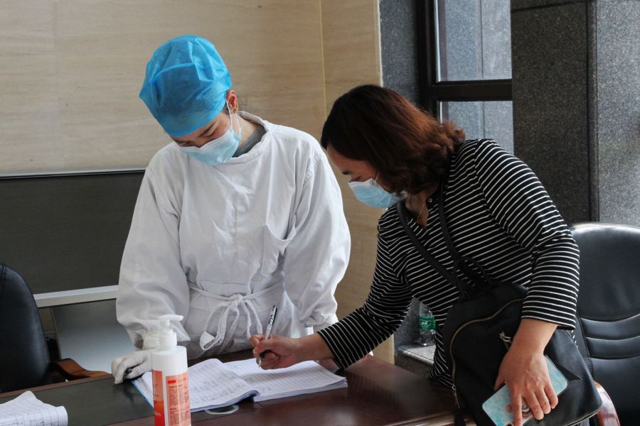 针对老年人等部分群体,无法注册健康卡的,医务值班人员进行现场登记,仔细询问个人情况。