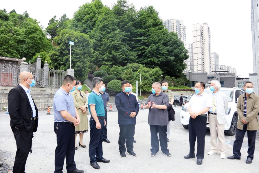 刘昌刚、向顶天一行到内科停车场了解医院基础设施建设情况。