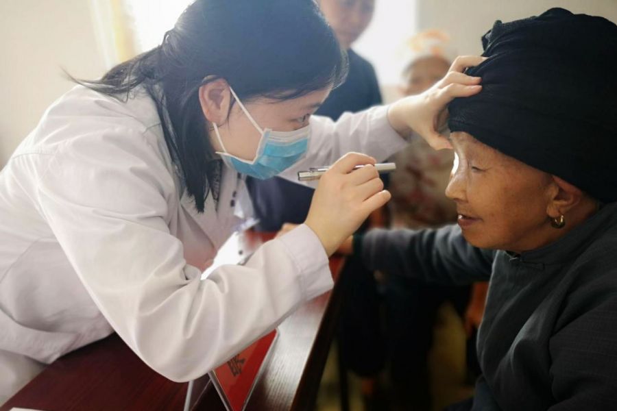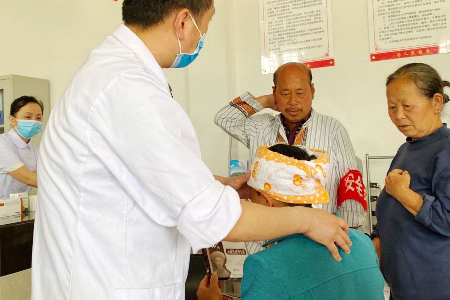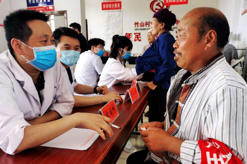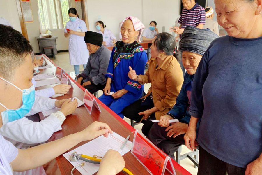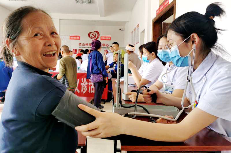 参观后,由支部党员组成的专家团队积极组织村内义诊,把优质医疗服务带进竹山村。由各学科专家组成的医疗护理团队为村民提供了全科、细致的医疗服务。从资深专家到中青年骨干,义诊团队不拘于有限的硬件条件,全情全力投入诊疗工作。在苗族村寨,尽管语言交流稍显困难,在当地工作人员帮助、翻译下,义诊团队为每一位村民仔细检查、耐心解答、周到叮嘱,并提供了部分常用药品,义诊工作获得当地村民好评。