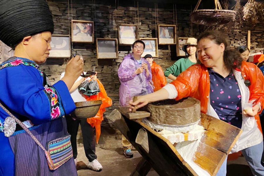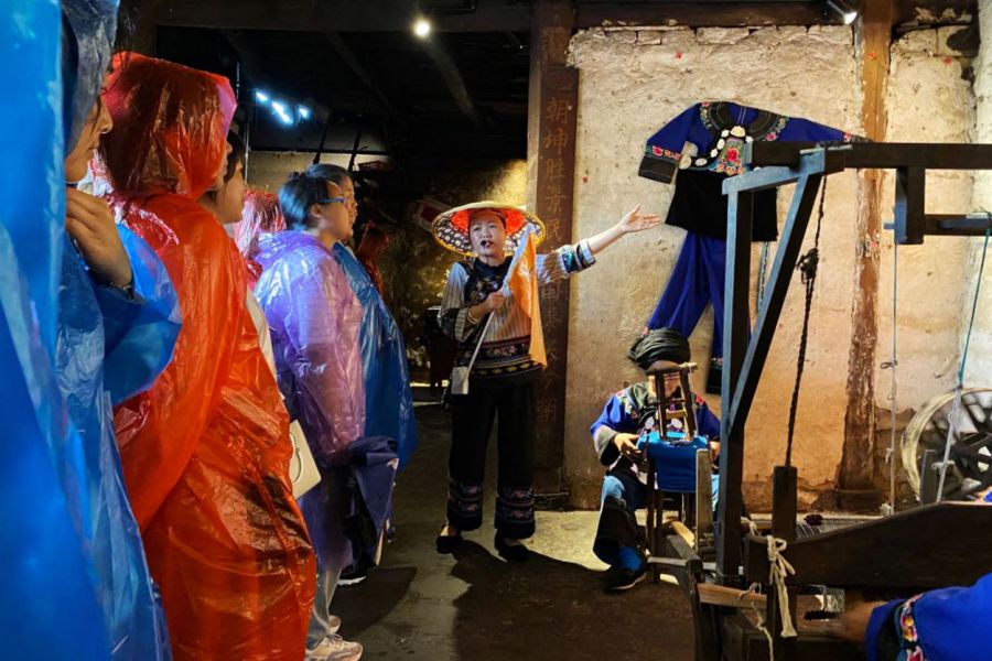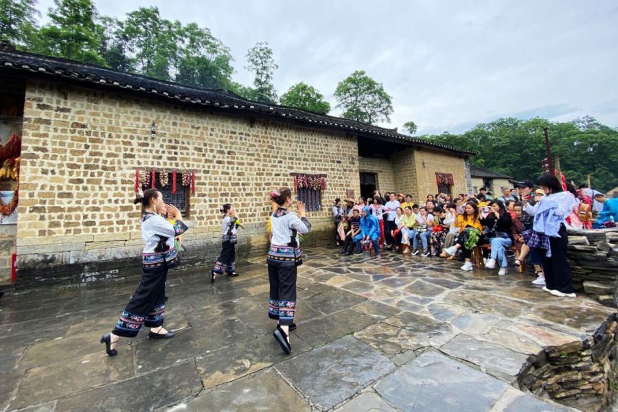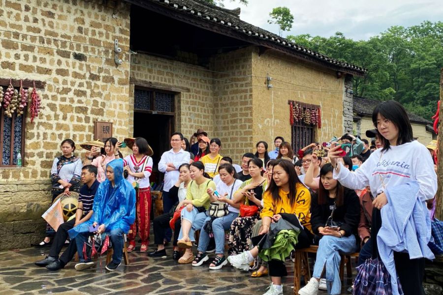 雨色朦胧,支部党员不减热情,走访参观了凤凰县竹山村。村民老乡衣着鲜亮的民族服装,重现农作、民俗生活的场景,农耕文化、民族文化在绿水青山间生动交融。新农村旅游产业与传统民俗风情有机结合,是新农村人面对时代出题及时做出优秀答卷,也让支部党员深深体会到习总书记“绿水青山就是金山银山”讲话精神。