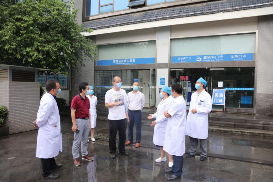 5月20日,湖南省新冠肺炎疫情联防联控防控组第七组督导组来州人民医院检查防控工作。院党委书记彭剑涛,院长周明欢,副院长