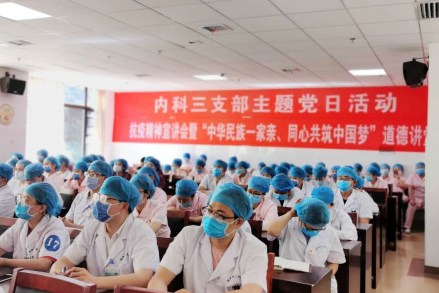5月22日,内科第三支部根据院党委、院行政《关于做好我院抗疫精神集中宣讲的通知》要求,召开抗疫精神宣讲会暨“中华民族一家亲、同心共筑中国梦”道德讲堂主题党日活动。副院长黄纯海参加宣讲会并讲话,内科第三支部书记主持会议。