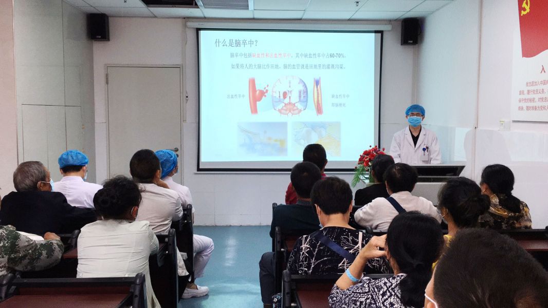 脑卒中俗称“中风”,是一种急性脑血管疾病,具有高发病率、高致残率、高复发率和高死亡率的特点。由于对于脑卒中早期知识的缺乏,往往延误了患者最佳救治时期。为了普及更多脑卒中救治知识,预防脑卒中,关爱患者及他人,5月28日,内科第一党支部举办了由神经内科医生主讲的脑卒中健康宣教“三关爱”主题活动。