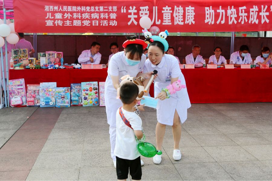 6月1日,州人民医院外科总支第二支部在乾州世纪广场开展“关爱儿童健康,助力快乐成长”科普宣传活动,让孩子们度过一个别样的、快乐的、富有知识趣味的儿童节。