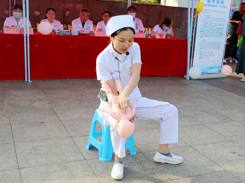 “生活中小儿气管异物的意外常有发生,家长们经常会手足无措,别怕,我来教大家一个急救方法。”小儿疝与腹壁外科护士王玮玮现场演示了海姆立克急救法,针对三岁以下和以上年龄段分别示范了不同的急救方法。同时,结合工作中遇到的真实案例警慑家长们要提高防护意识和自救能力。