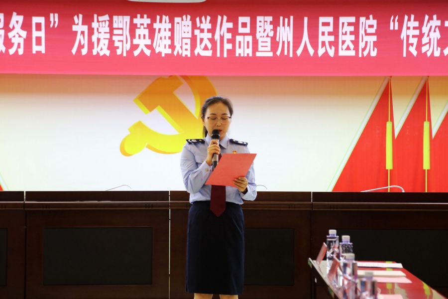活动现场,州税务局书法协会会员肖娟吟咏了黄摩崖所作的词《最美的白》,礼赞抗疫英雄;援鄂英雄代表彭涛致辞感谢,表示在平凡的岗位上继续发扬抗疫精神,与全院一起筑牢人民群众生命健康的保障防线;州书法家协会代表先后向州人民医院和援鄂抗疫代表赠送书法作品,彭剑涛、第一批援鄂医疗队队长黄娟受赠。