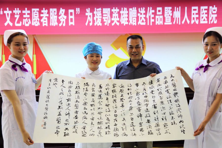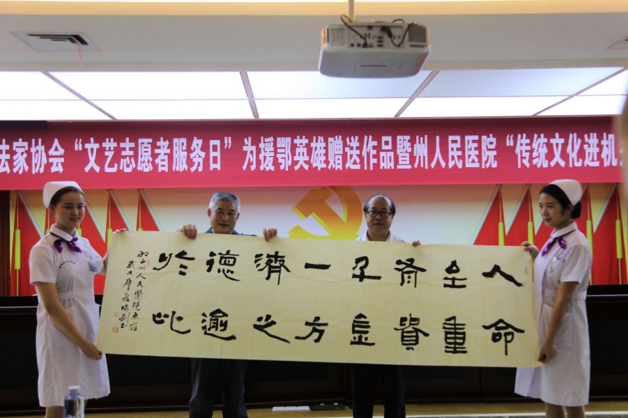 “翰墨传深情,丹心敬英雄”。6月2日,湘西州书法家协会到州医院开展“文艺志愿者服务日”为援鄂英雄赠送作品暨州人民医院“民族文化进机关”主题活动。