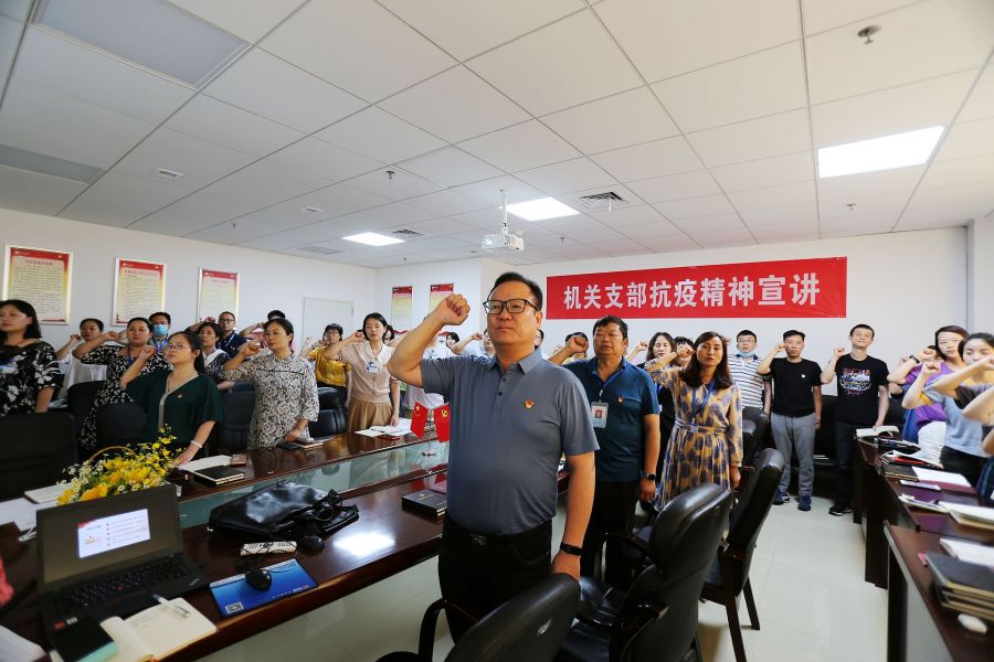 “我志愿加入中国共产党,拥护党的纲领,遵守党的章程……”由副院长贾小卷领誓,机关支部的党员同志们面对鲜红的党旗,高举紧握的拳头庄严宣誓,重温自己对党忠诚的誓言。宣誓完毕,贾小卷带领党员同志们重温了党章,进一步加深了大家对党的性质、宗旨、指导思想、奋斗目标的理解,再次提醒每个党员要始终牢记作为一名共产党人的权利和义务。