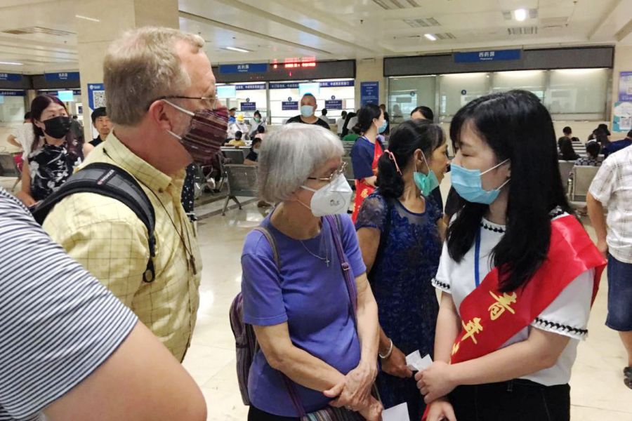 志愿者们的耐心服务,让这对外籍友人深感医院的服务温度。离开医院时,他们连连微笑着向志愿者鞠躬致谢,并为医院就诊的便捷性和诊疗服务点赞。