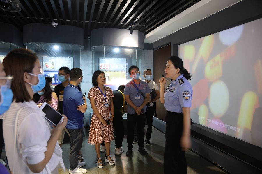 州公安局禁毒宣传讲解员正在给大家讲解禁毒相关知识
