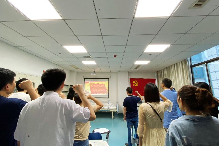 会上,外科第三支部全体党员肃立,面对党旗再次进行宣誓,重温入党誓词、重温入党志愿书、重温党章、重温初心。