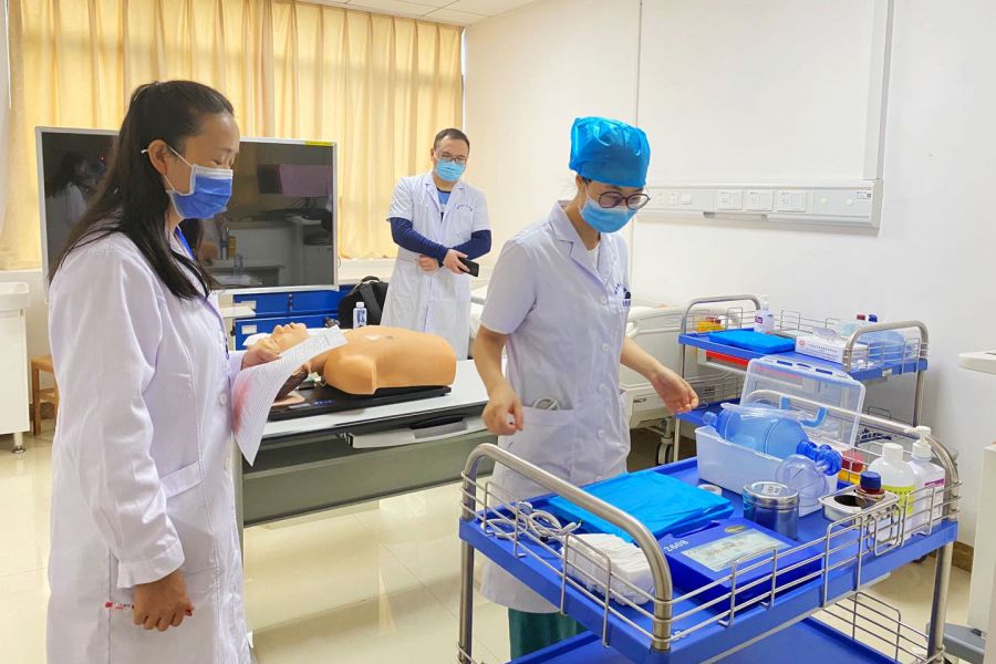 为全面贯彻落实住院医师规范化培训制度,加强专业基地建设和规范管理,保证住院医师规范化培训质量和效果,自6月份开始,州人民医院2020年第二阶段住院医师年度考核工作在技能中心进行,对122名通过国家执业医师考试但尚未完成住培过程培训的学员进行考核。
