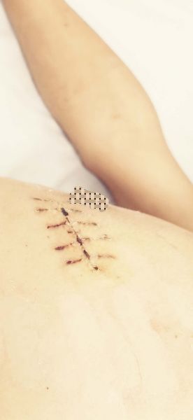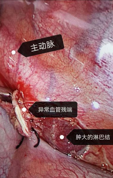 异常血管残端(自降主动脉发出) 患者胸壁伤口(3cm)