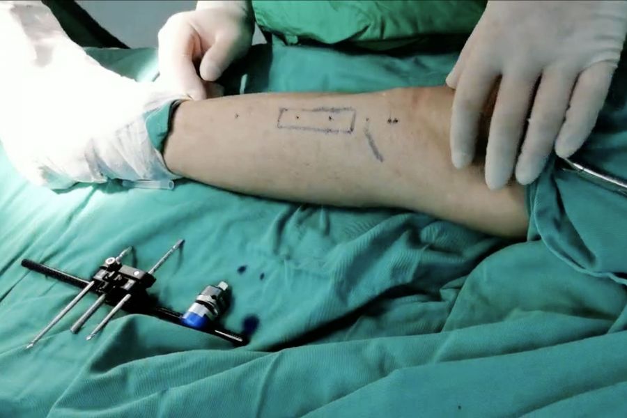 “胫骨横向搬移术”作为一项临床治疗糖尿病足的新技术,采用小切口、小骨窗、利用小型骨横搬架,便于医生和病人术后护理。其治疗原理是运用Ilizarov生物学理论“张力—应力法则”,通过对生物组织持续、缓慢、稳定的牵张,产生一定张力,刺激骨骼、血管、皮肤等组织的再生和活跃生长。在这个过程中,通过微损伤和修复机制,促进血管网再生,实现微循环重建,为缺血的肢体再生一套侧枝循环系统,解决了糖尿病足缺血的问题,从而使患者的肢体缺血性疼痛得以缓解,感染坏死的创面容易愈合,让患者免去截肢的风险。