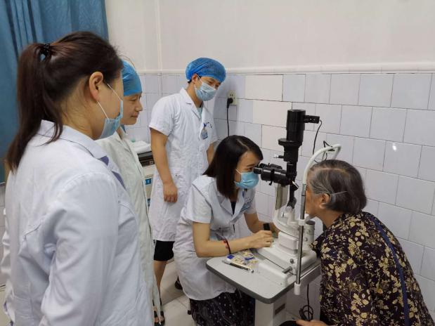 何霓医师给患者行裂隙灯检查