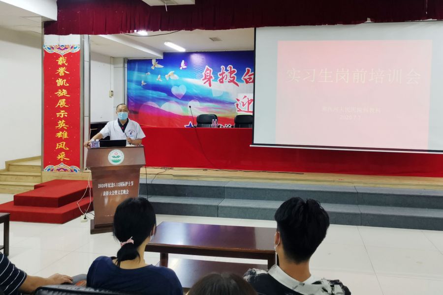 会上,科教科介绍了州人民医院实习生管理规定以及职责,并进行了劳动纪律教育和职业作风建设教育;院感科就新冠疫情防控的基本要求进行了强调,并详细介绍了医院防控措施以及在临床工作中院感防控的监测与预防;护理部就医院的历史、南丁格尔精神的传承、临床工作基本要求等方面进行了培训。