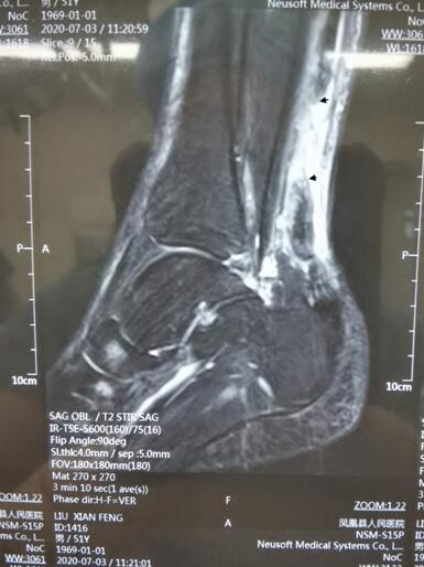 入院后,经过核磁共振检查,诊断为“左跟腱断裂”。根据患者的情况和手术诉求,骨二科主任朱光宏为刘先生制定了手术方案——采用跟腱断裂通道吻合技术进行跟腱微创手术,并亲自主刀。