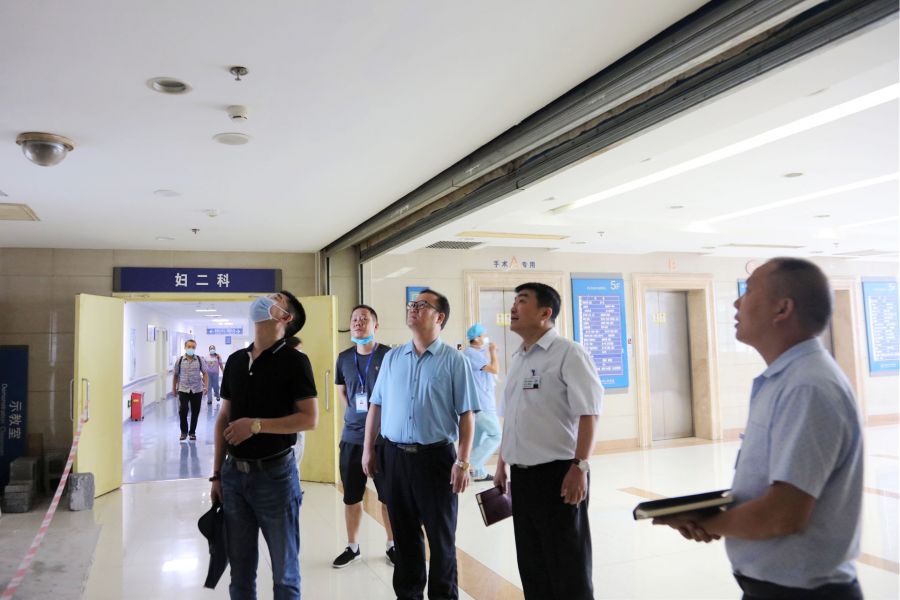 督查组到州人民医院临床科室实地察看消防装置情况。