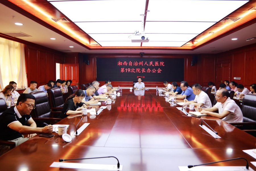 7月23日,湘西州人民医院召开第19次院长办公会。院领导彭剑涛、周明欢、贾小卷、莫莉萍、田茂友、罗勇、向平、江宏冰、梁民勇、黄纯海,职能科室负责人,内外总支书记及机关、后勤、药械支部书记参加会议。会议由院长周明欢主持。