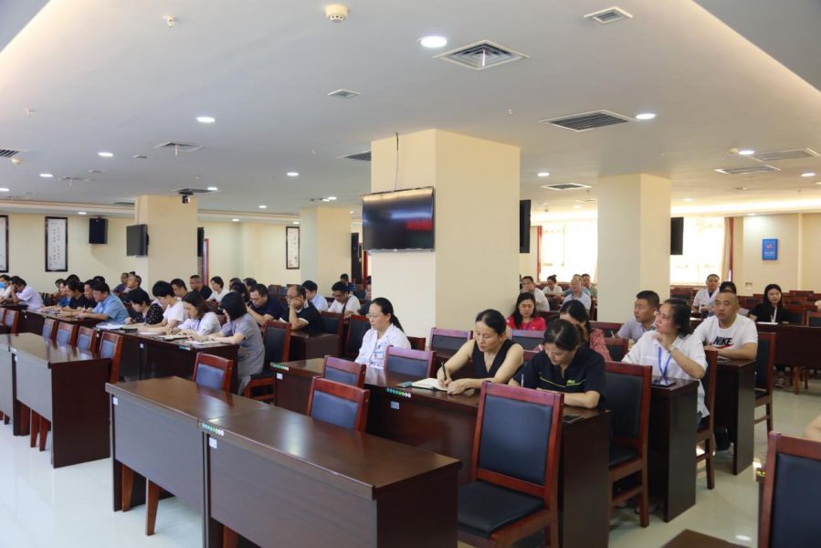 会议现场,全体转岗交流及提拔重用的中层干部参会,并认真听讲。