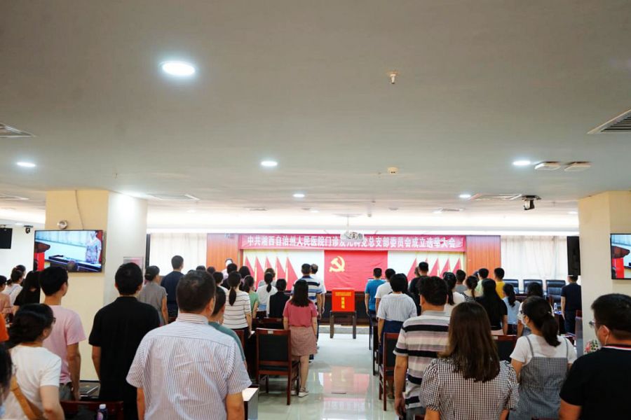 最后,在高昂的《国际歌》中,中共湘西自治州人民医院门诊及儿科党总支部委员会成立选举大会的圆满结束。