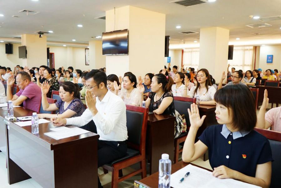 每个党员都严肃而认真地行使着自己的权利,庄严而神圣的依次投票