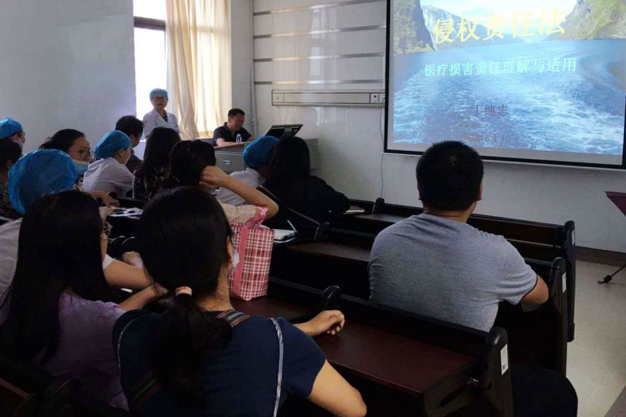 会上,邀请了医疗安全科顾问丁纯志就《侵权责任法》、医疗纠纷预防和应对策略进行系统解读,通过对医疗纠纷产生的常见原因、责任划分、处理结果进行分析,结合国内、省内、院内相关具体医疗纠纷案例用法律的视角来检视临床医疗行为,通俗易懂的讲解了相关法律知识,并结合自己多年的临床工作及近年来医疗纠纷处理经验,为医务人员实际工作中如何正确防范医疗纠纷提供策略、指明方向。