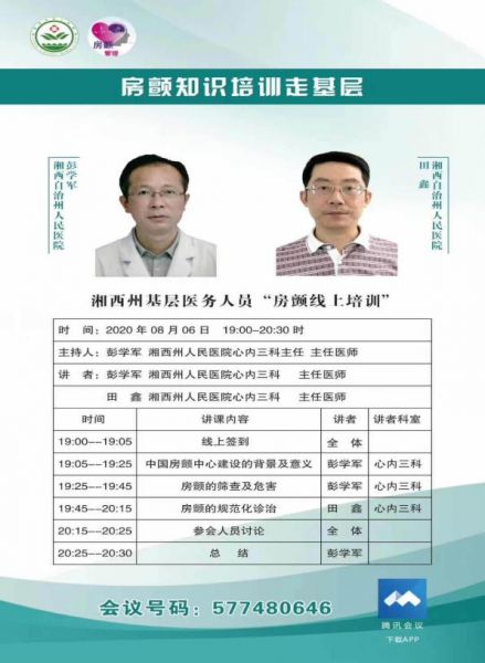 为进一步提高基层医疗机构房颤诊治能力,开展房颤分级诊疗,以最大程度降低房颤引发的卒中及其他血栓栓塞性疾病的发病率致残率死亡率,8月6日,湘西州人民医院心内三科举行“房颤知识培训走基层”线上会议。
