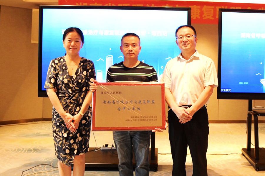 向平、中南大学湘雅二医院教授罗红为湖南省呼吸治疗与康复联盟各分中心单位进行授牌。