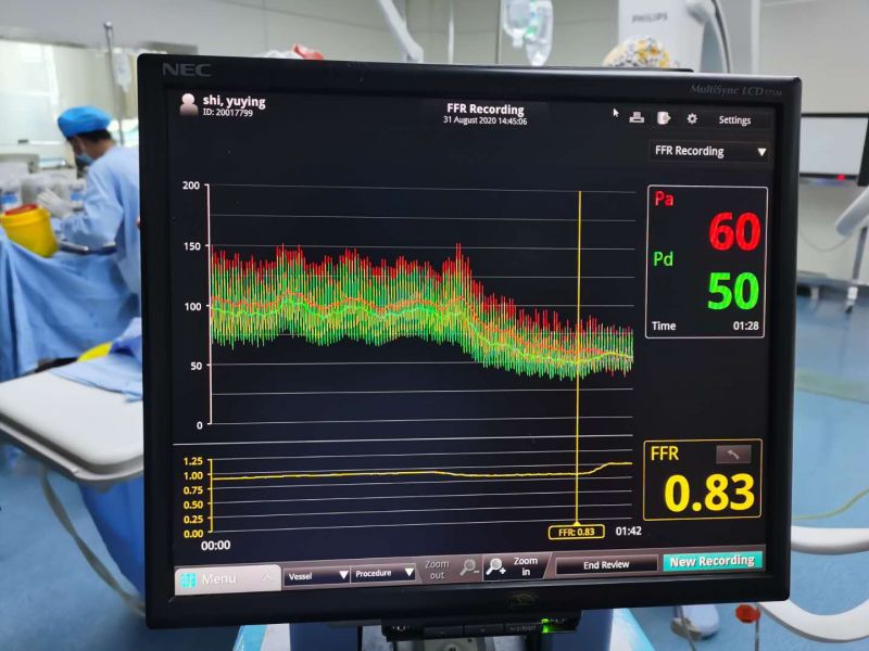FFR通过特定的压力导丝,测量冠状动脉血流储备,评估冠脉造影为冠状动脉狭窄的患者血流能否满足心脏需求。在FFR技术开展之前,临界病变的介入策略选择较为困难,需根据患者症状大致判断是否需植入支架。FFR技术开展后,便可通过精确的测量,为是否需要植入支架提供客观依据。