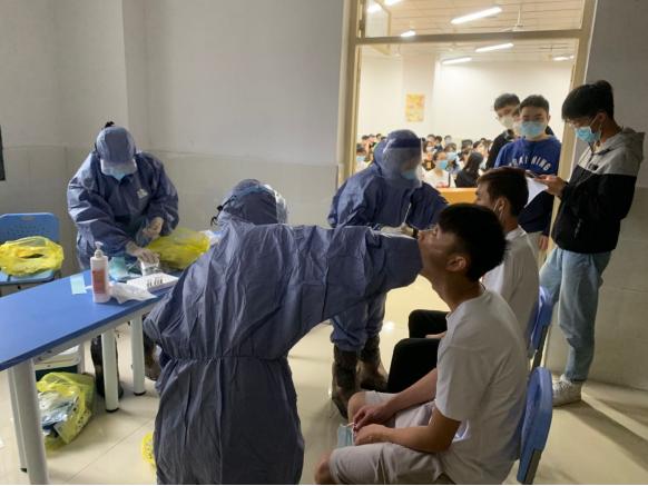 随后由本院医务人员一一为同学们进行咽拭子采集。按照各自工作分工,科教科工作人员各尽其职并做好工作流程的相关工作,整个过程秩序井然,有效保障了临床本科生入学工作的顺利进行。