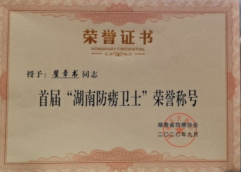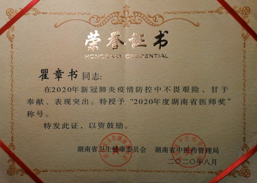 感染科主任瞿章书喜获湖南省首届“防痨卫士”表彰 发布时间:2020-09-14 17:47 本文来源: 未知 分享到: 9月14日,从省城长沙传来喜讯!州人民医院感染科主任瞿章书在抗疫防痨工作中表现突出,荣获湖南省首届“防痨卫士”表彰。 据悉,2020年以来,我省广大防痨工作者奋战于"抗疫防痨“一线,特别是基层一线防痨人员中,涌现了一个个敢于担当,甘于奉献的感人故事。湖南省防痨协会为了表彰和宣传他们为控制我省新冠肺炎和结核病疫情所做出的重要贡献,进一步深入开展“不忘初心,牢记使命"主题教育活动,经各市州推荐和专家评审,共评选出首届"湖南防痨卫士"14名。 这是继8月19日“国际医师节"瞿章书获的"湖南医师奖"荣誉后,再一次受到省级表彰。荣誉的获得是对他工作的肯定和回报,也是对付出的加冕和褒奖,榜样的力量也将鼓舞和激励着全体医务人员继续坚守,用实际行动践行医者誓言,为保卫人民生命健康继续做出新的贡献。 扫一扫 手机端浏览