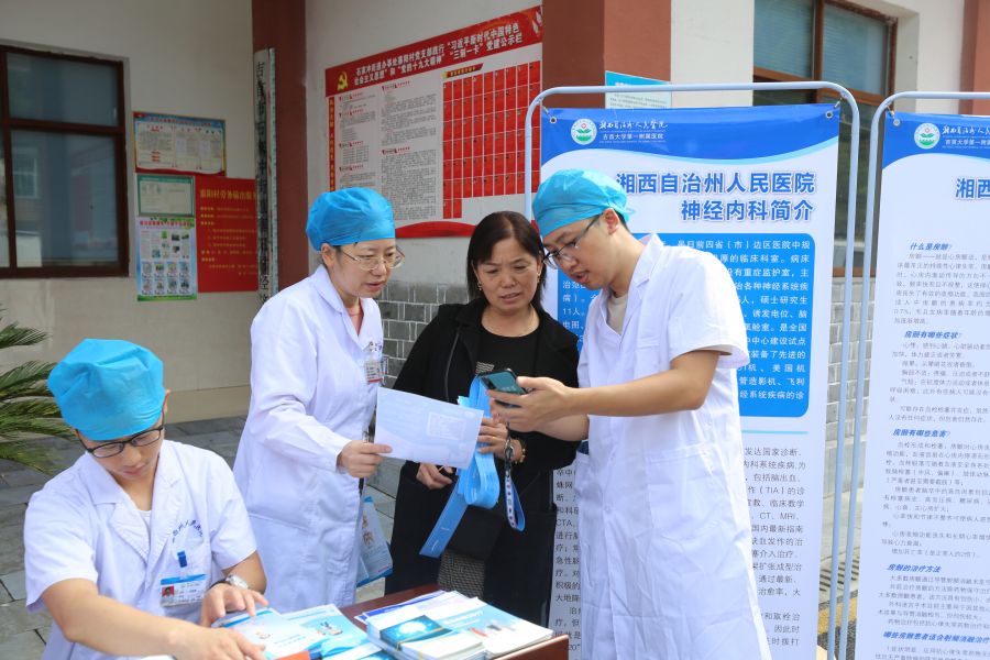 活动现场,来自州人民医院神经内科、康复科、心内科、内分泌科、免疫风湿科的专家们为群众提供脑卒中、高血压、糖尿病、类风湿关节炎疾病等慢病的初步筛查、诊断和一般治疗方案以及疾病康复的咨询;为群众测血压、测血糖、测量腰围、发放慢病宣传手册;现场为患者讲解网上预约挂号系统,并帮助病人成功预约专家号,群众普遍反应好。同时与当地医务人员进行了学术交流和业务指导。